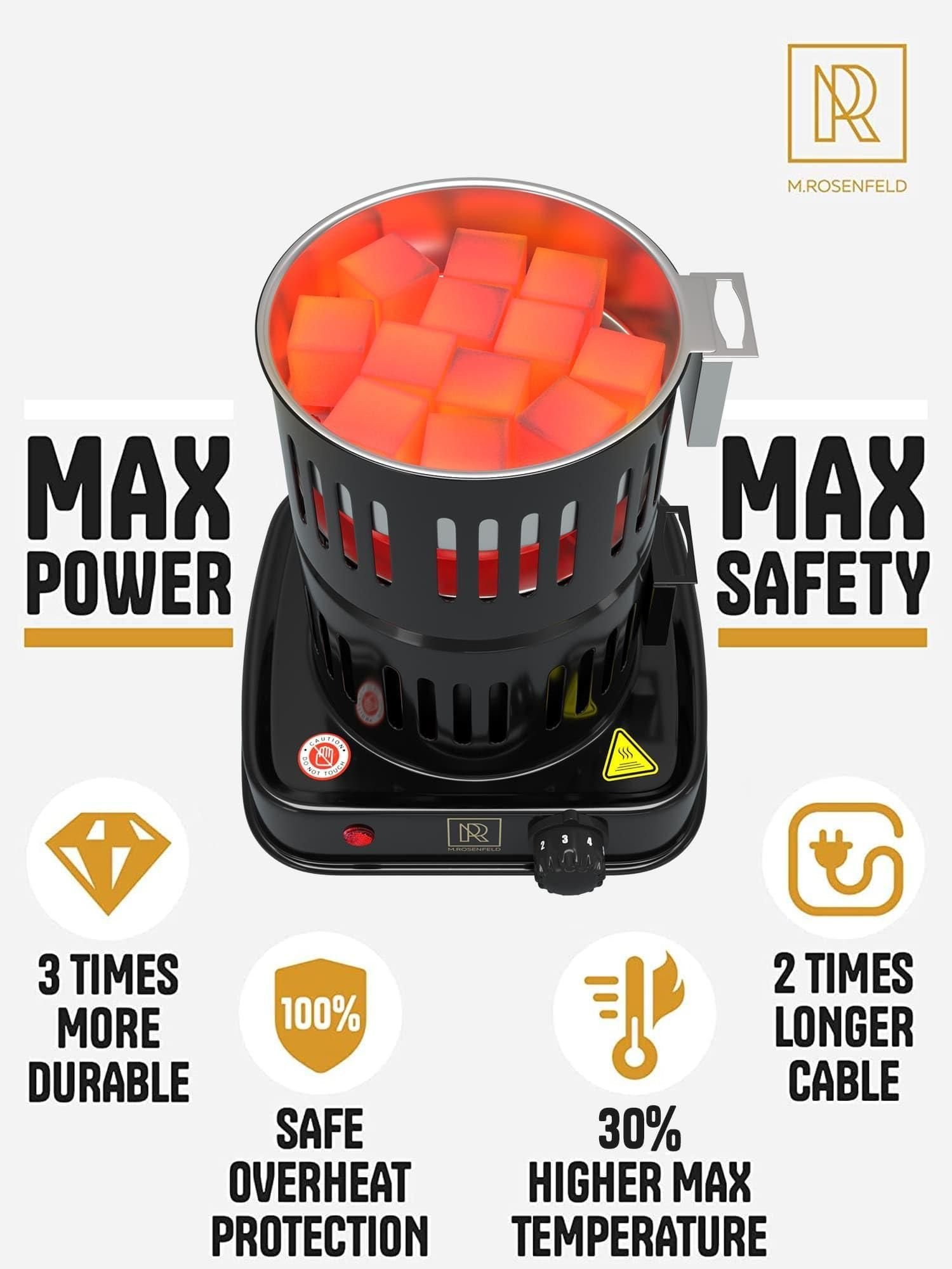 1.very fast & universal - with 800-watt this charcoal briquettes electric grill burner makes coals for anything (coconut charcoal, bamboo, wood) to burn red after 6 min & ready to use. for any kind of coals: cubes, flats etc).