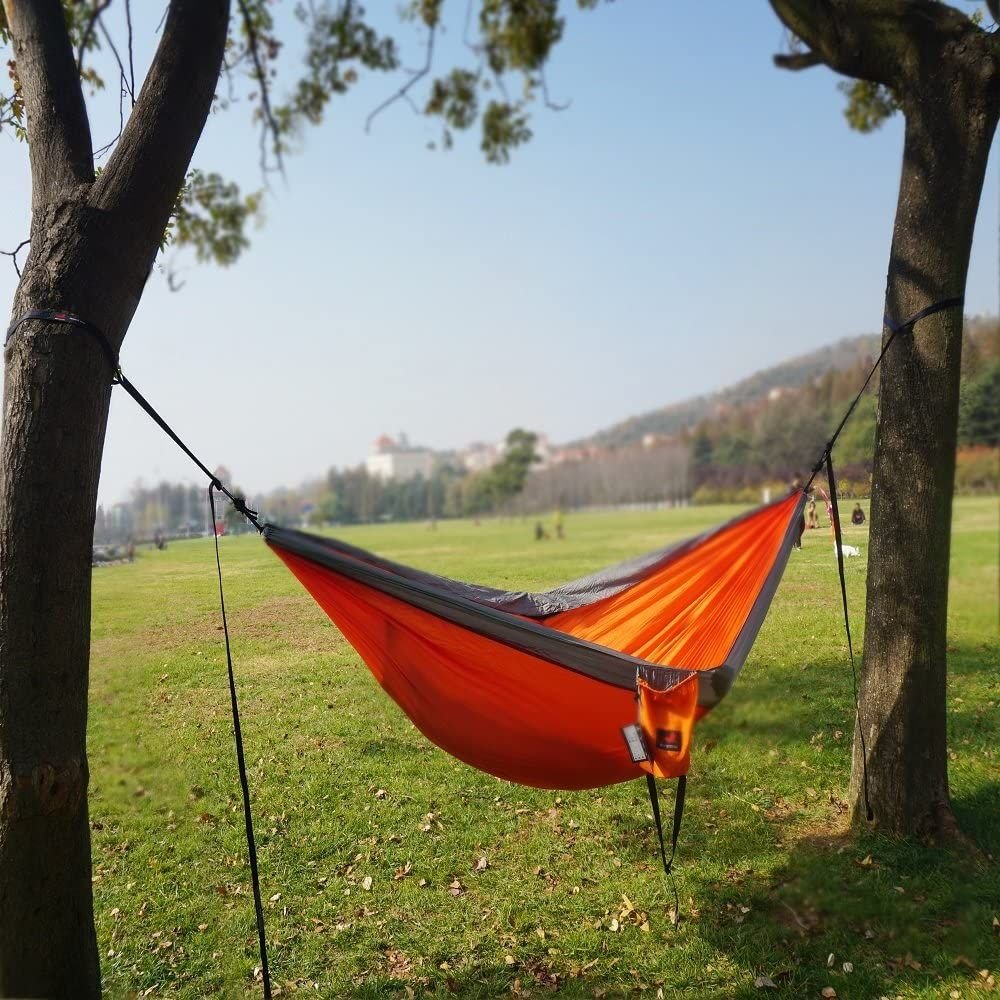 1.Lightweight & Portable: There are storage bags both inside and outside the hammock. The internal bag can store phones and other debris. The external bag can store hammock and buckles when you are not using it. Convenient and lightweight, foldable and easy to carry.
