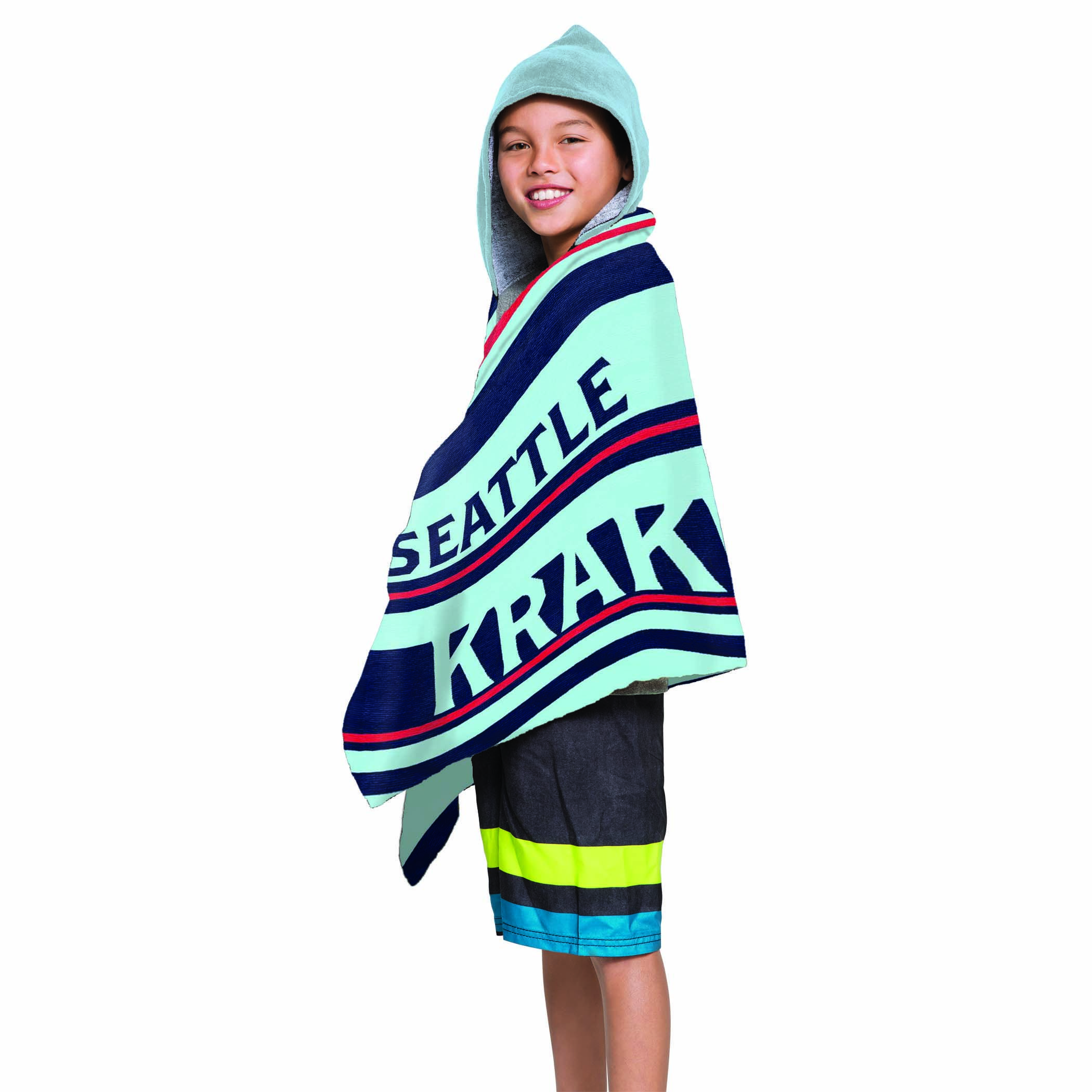 Get ready for a winning beach or pool day with our Youth Hooded Beach Towel! Soft and lightweight and is the perfect size for young sports enthusiasts. Featuring hood and hand pockets on the inside of towel and proudly showcases your team's logo and colors. Whether it's a day at the beach or a dip in the pool, this towel is the perfect companion.