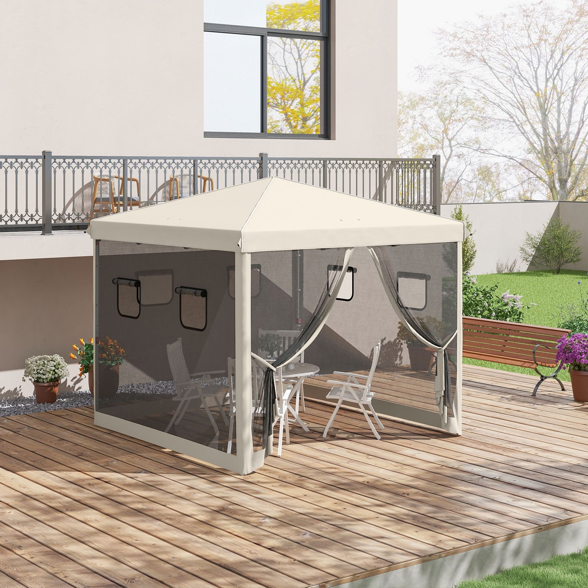 Pop in, pop up, and pop out with Outsunny. Our pop-up canopy has near-instant assembly and a convenient carrying bag so you can quickly fit a crowd. This large outdoor canopy tent provides you shading without fading. Get rid of unwanted winged guests by putting up the included mesh curtains. A set of service windows lets you pass items back and forth between your space, making it excellent for vendors. Get out and get comfy with an Outsunny portable canopy tent.