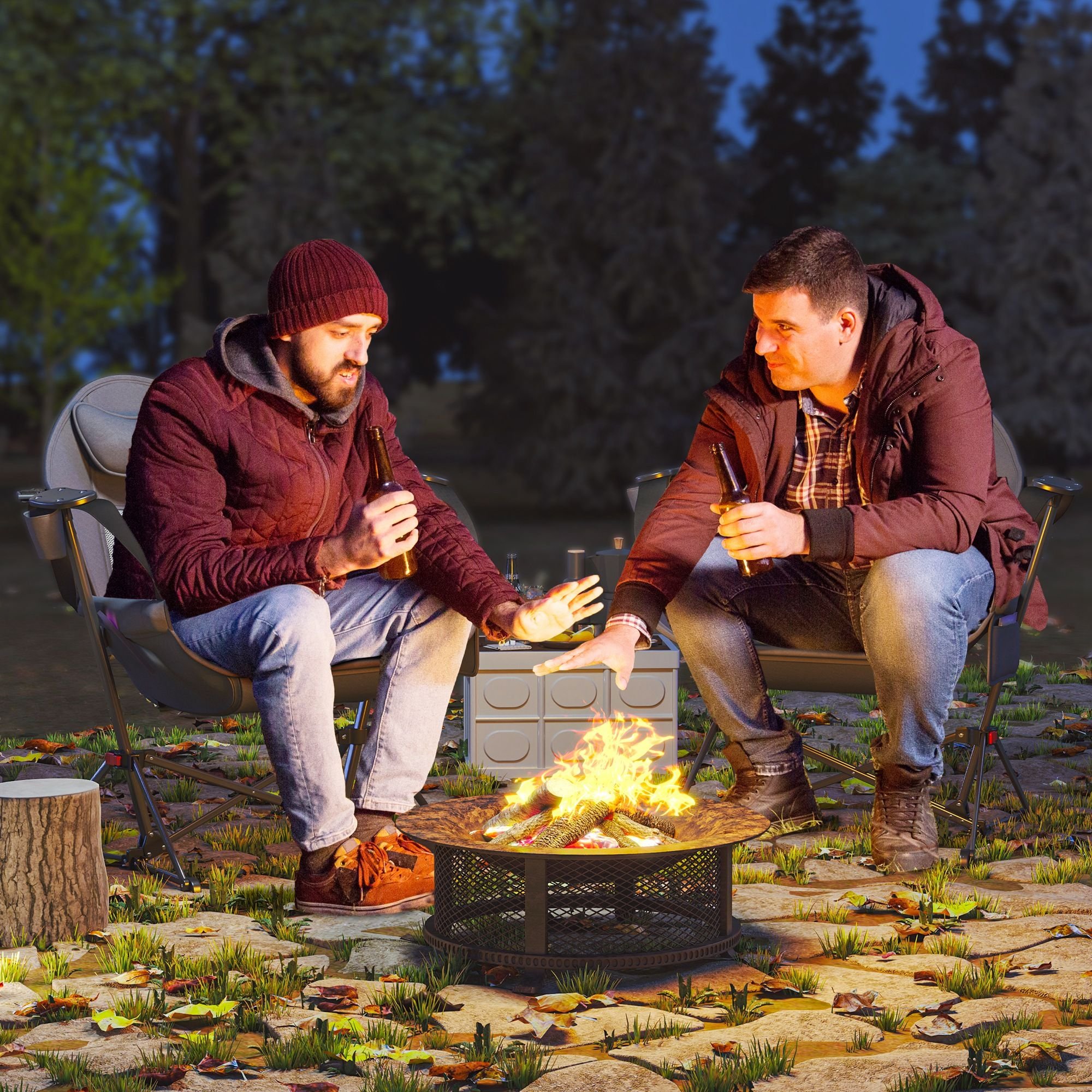 1.- Versatile Sitting & Reclining: Use the swinging camping chair's strap to find your back angle. Whether relaxing by the campfire or soaking in scenic views, this chair offers 90°-168° of gentle swinging motion without needing ropes or trees.