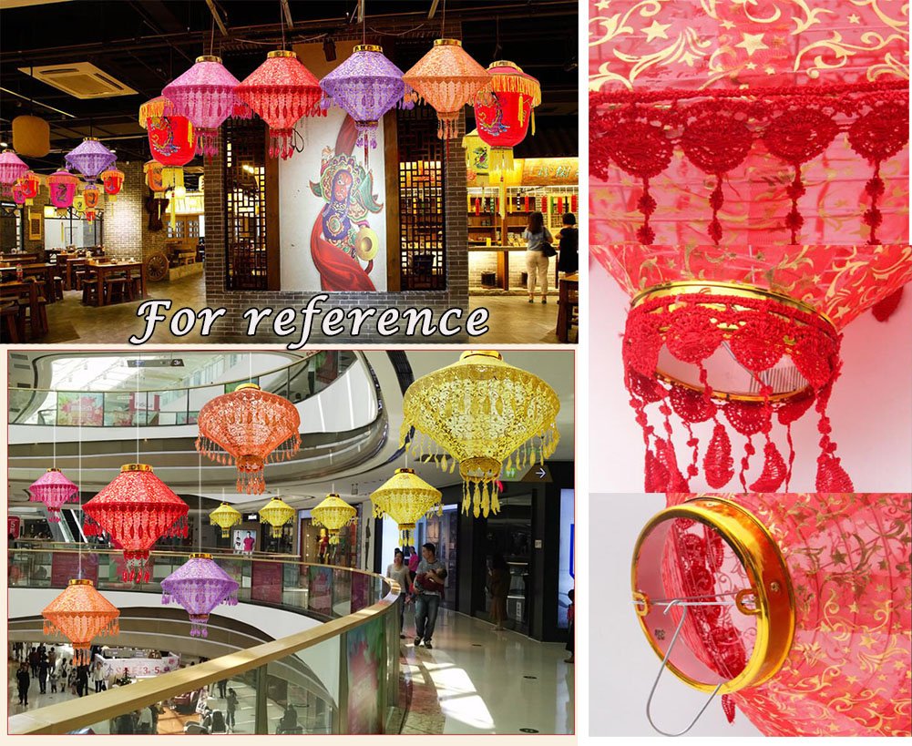 Nice festival decorations, full of decorative lanterns. Red lantern is the symbol of family reunion and festive, make your families enjoy a unforgettable festival. With ethnic style designed, it is perfect for decorating your store, house, bar, restaurant, hotel with these lampshade. Add the happiness and peace atmosphere on Spring Festival, Lantern Festival, Christmas, wedding, birthday party and business ceremonies. Hang one or several to create a wonderful house decoration!