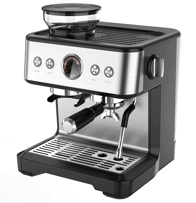 SKU: PSCM7060 coffee grinding machine. 20Bar extraction cappuccino / American Italian espresso, 1 cup / 2 cups mechanical button + instrument number, 2300W, steam type, powder hammer 58mm, 30 level grinding setting