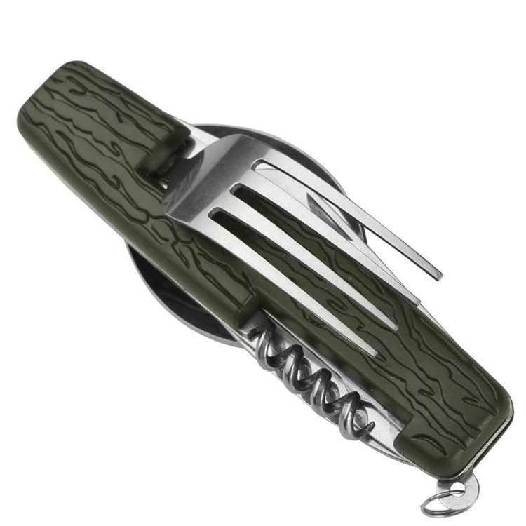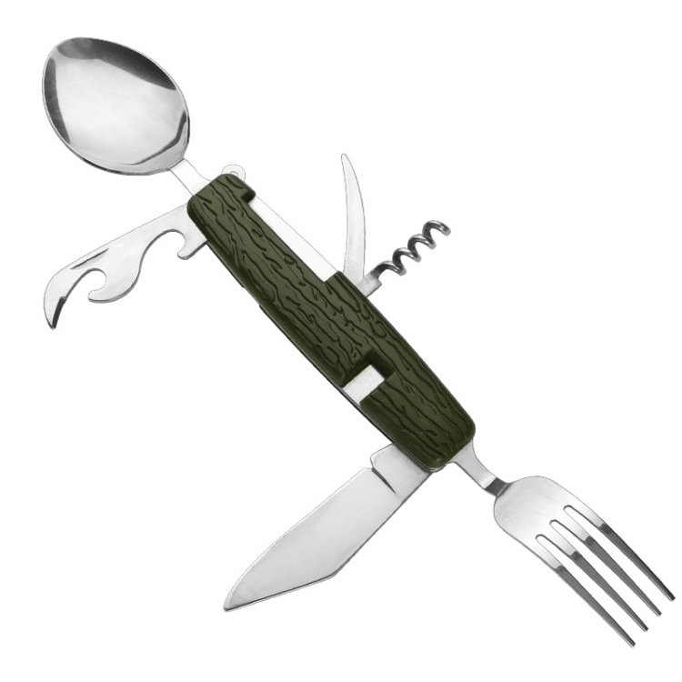 3.Multifunctional design included spoon, red wine bottle opener, fork, can opener, beer bottle opener, knife.