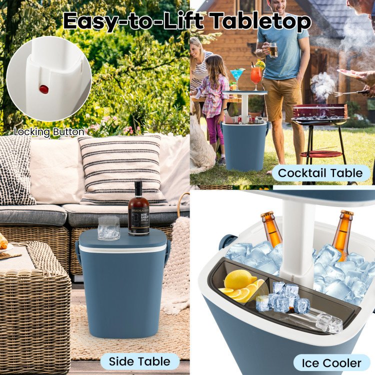 3-in-1 Portable Cooler Bar Table with Bottle Opener and Lift Top Lid for Camping Poolside